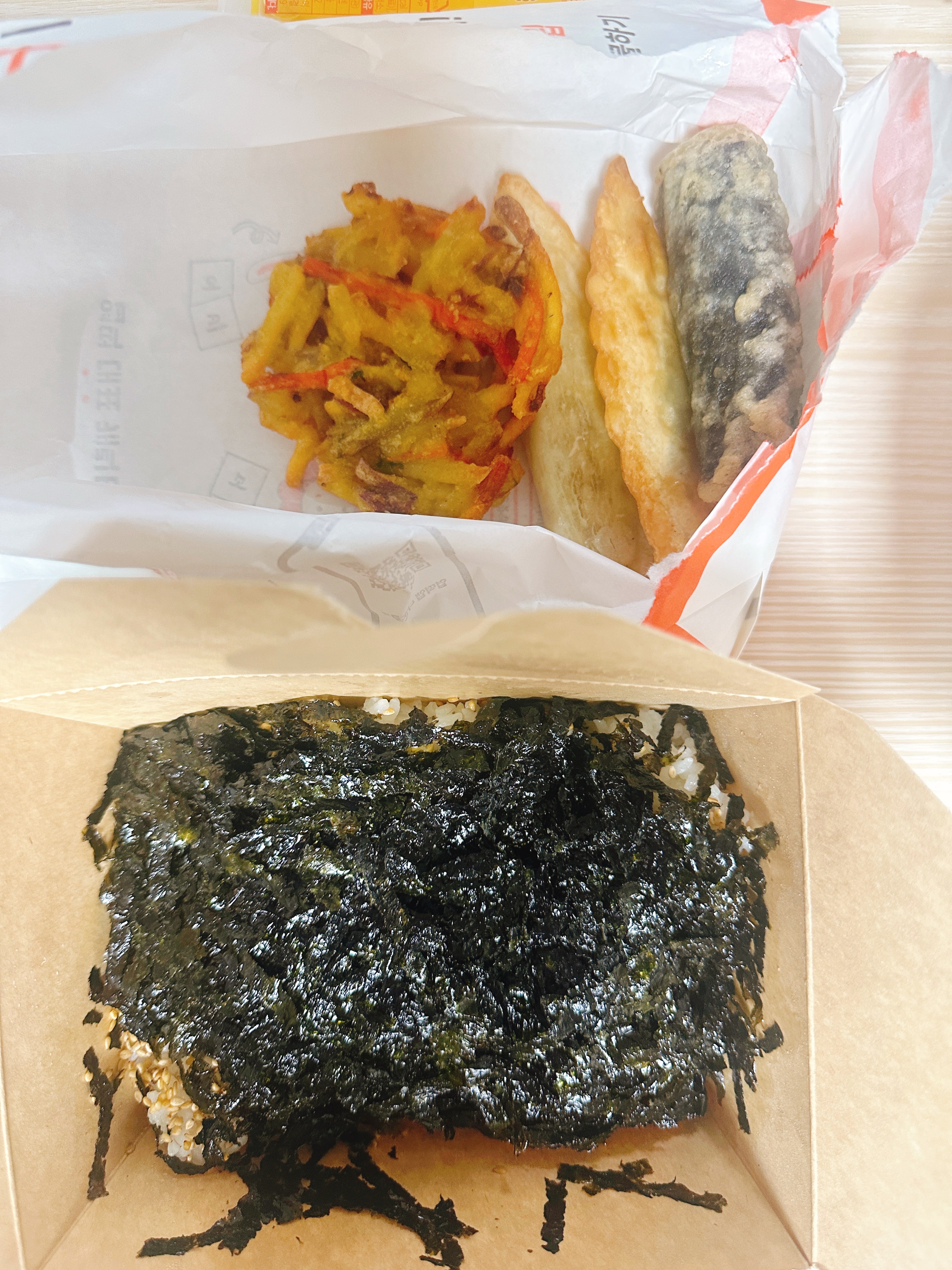 떡볶이 + 주먹밥 + 모둠튀김 (김말이1, 야채튀김1, 만두2)
