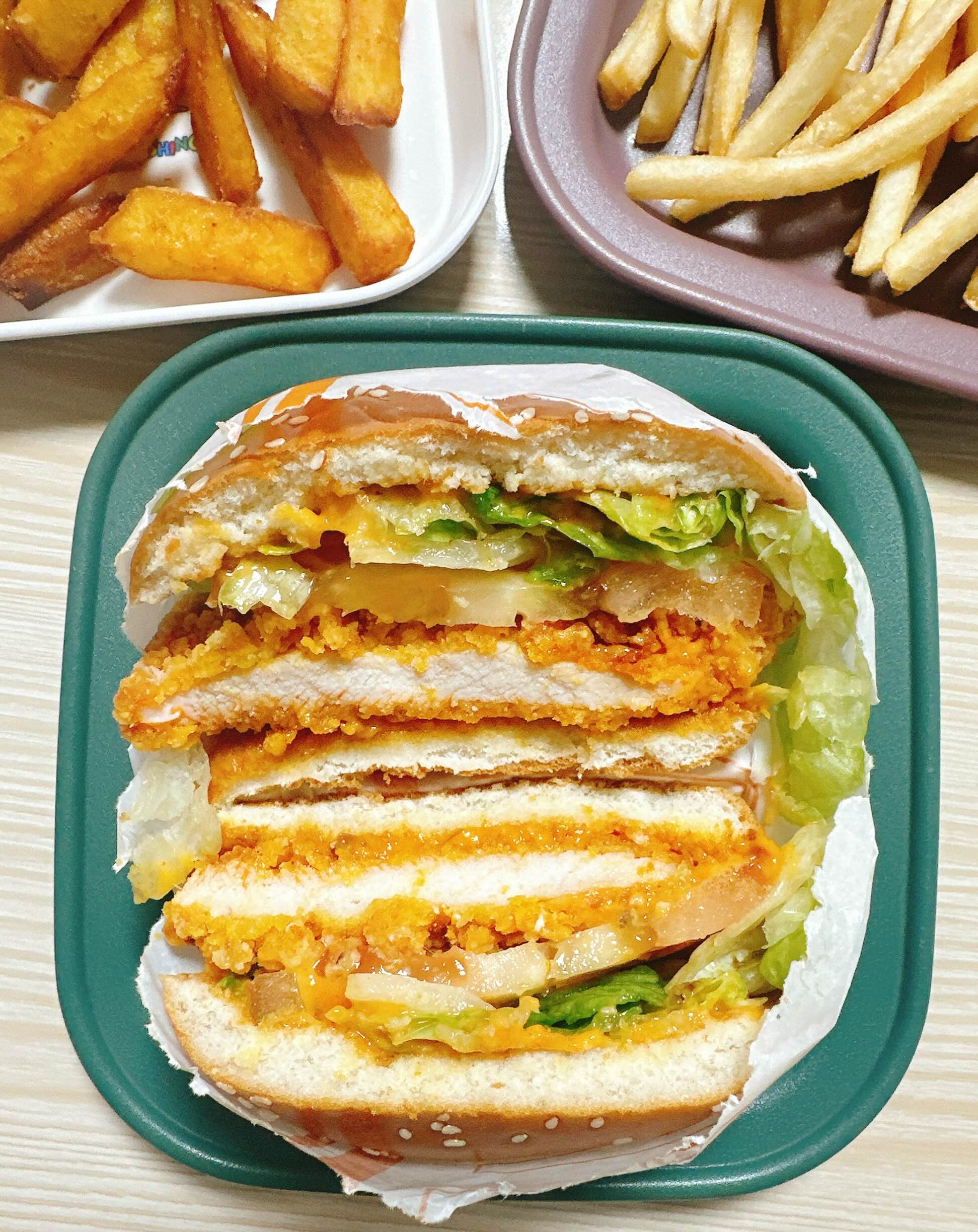 버거는 맵고 크리미한 맛을 좋아하는 사람들에게 추천하고, 고구마 후라이는 감자튀김보다는 조금 고급스럽고 건강하면서도 달콤한 디저트로 취향 저격이었죠.